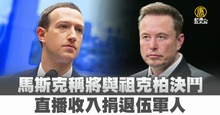 馬斯克稱將與祖克柏決鬥 直播收入捐退伍軍人