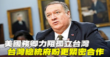 美國務卿力阻孤立台灣 台總統府盼更緊密合作