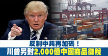 反制中共再加碼!川普另對2千億中國商品徵稅