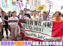 2016-06-08 20:26:41國際化妝品牌Lancome在中共官媒《環球時報》施壓下,聲明取消與香港藝人何韻詩合作的音樂會,今天,香港多個團體到銅鑼灣時代廣場門市抗議,並發起抵制行動。