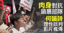 2019-06-13 20:18:24香港民眾反送中示威遊行,被當局定義為暴動,出動武裝警力,導致近百人受傷,向來關心政治的香港歌手何韻詩也參加遊行,連續幾日現身街頭,昨天(12日)還正面對峙,全副武裝的大批警察,阻擋警察進入大樓驅趕示威者。