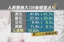 2015-12-01 20:32:32國際貨幣基金組織30號宣布,將人民幣納入特別提款權(SDR),成為國際主要儲備貨幣之一,不過,今天,人民幣持續維持貶勢,外界持續呼籲,加速人民幣改革。