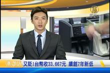 2016-01-13 07:01:35鏡頭轉回台灣,台北股、匯市昨天又同步收黑,新台幣兌美元終場收在33.667元 貶值1.6分,不僅連兩個交易日收貶,更續創近7年收盤新低價。