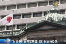 2016-01-29 12:35:01日本央行今天意外宣布 實施負利率,把利率訂在負0.1%,但維持貨幣基數年增目標在80兆日圓不變。受這項消息影響,日圓兌美元今天大幅貶值,一度下跌超過2%,貶破121日圓兌1美元。