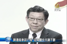 2014-12-14 21:09:12陳德銘今天上午,前往台南,拜會宗教人士,下午則到台北至善養老院進行參訪,不過從南到北,抗議聲浪不斷,而對於台灣的政治發展局勢,陳德銘今天透露,他每天都看新聞到半夜一兩點,似乎也間接證實來台目的,並非只是經貿參訪。