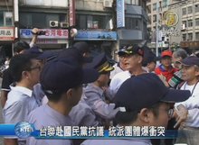 2016-10-26 20:22:44台聯青年軍今天(26)前往國民黨中央,抗議洪秀柱到中國參加國共論壇。與前來聲援國民黨的統派團體愛國同心會,發生激烈肢體衝突。衝突過程中,台聯女專員從花台上摔落,撞擊頭部受傷,被救護車送醫。而原本要用來抗議的標語,更被搶走撕碎。雖然警方不斷阻隔雙方,情緒激動的統派團體不時衝上前叫罵。人數居劣勢的台聯,就在警方包圍下打算進行記者會,不過遭遇吐口水、丟擲物品。事後台聯前往警局製作筆錄,並將對出手傷人的統派團體提告。