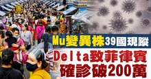 Mu變異株39國現蹤 Delta致菲律賓確診破200萬