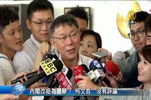 2018-07-13 20:29:32行政院內閣人事大搬風,各界都關注。台北市長柯文哲,今天出席活動,也被媒體問到,會不會覺得行政院內閣改組,有選舉考量。