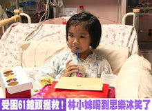 2016-02-12 20:07:36日前搜救隊從維冠金龍大樓救出受困長達61小時的林素琴小妹妹,在獲救當下跟急救的醫生說,她很想吃思樂冰,今天(12日)行政院長張善政到醫院探視,林小妹妹也喝到超商準備全台唯一一杯的冬天思樂冰。