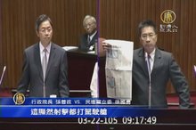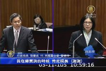 2016-03-22 20:50:55行政院長張善政今天(22日)最後一次到立法院備詢,和民進黨立委葉宜津因為統籌分配款該怎麼使用,唇槍舌戰。