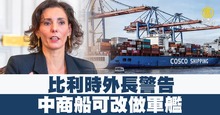 2022-10-31 12:42:55中共投資歐洲港口等基礎設施引發關注。比利時外長拉碧警告,中共商船可能會改裝成軍艦。