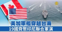 2023-09-11 12:38:18美國和加拿大的軍艦,9日穿越台灣海峽,展現對自由開放印太地區的承諾。與此同時,19個國家正在印尼參加為期2週的聯合軍演,人數高達5000多人,規模相當浩大。
