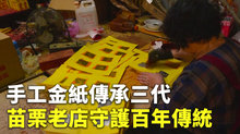 2022-02-10 21:29:40苗栗竹南鎮曾是金紙製造重鎮,全盛時期有數百家手工金紙行,但在工廠機械化浪潮下,手工金紙行已寥寥無幾。然而,一家開業近百年的金紙行,依然堅持手工製作,希望守護傳統。