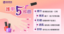 2018-05-08 18:37:51坊間盛行各式水晶指甲、凝膠指甲、黏貼甲片等造型彩繪,但消費者在追求美麗的同時,是否忽略了選購指甲油產品及使用安全的重要性?衛生福利部食品藥物管理署特別邀請臺安醫院皮膚科曾德朋主任,為大家說明「護甲5部曲」。