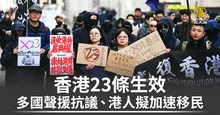香港23條生效 多國聲援抗議、港人擬加速移民