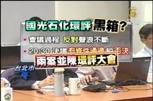 2011-04-22 21:08:32國光石化第五次環評審查會議,21日晚間決定將有條件通過和否決兩案並陳環評大會,場內引發與會學者反彈,認為主席根本是趁著對方離開後偷偷做成決議,因此有近百位環保人士和青年學子集結在場外抗議,揚言不否決,就拒絕見馬總統。