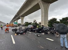 2022-12-02 10:40:33今天凌晨3時在國道1號北向高雄岡山段發生2輛聯結車與2輛小客車追撞,其中1輛聯結車為閃避失控滑落外側邊坡、駕駛受輕傷。上午7時許已排除事故,但一度造成回堵16公里。
