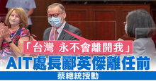 「台灣永不會離開我」AIT處長酈英傑離任前 蔡總統授勳