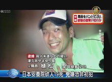 2016-07-26 20:37:20鏡頭轉到日本,日本驚傳砍人事件,而且事件發生的地點是在養老院。一名曾經在養老院內工作的離職員工,持刀進入養老院砍人,目前已知有19人死亡,20多人受傷。而更令人震驚的是,這恐怕不是他第一次對安養院老人施暴。