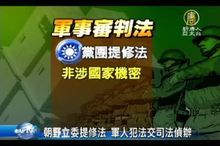 2013-07-26 21:13:01軍檢偵辦洪仲丘案遭到外界質疑,為了解決爭議,藍綠都要再臨時會提修法,國民黨團要將非戰爭時期,軍人犯法沒有涉及國家機密的部分,交由司法審判。民進黨團的版本則是,軍人戰爭時期犯法才由軍法審判,臨時會也將邀國防部長高華柱到立法院做專案報告。