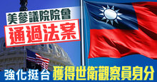 美參院通過法案 強化挺台獲得世衛觀察員身分