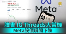 臉書 IG Threads大當機 Meta股價瞬間下跌