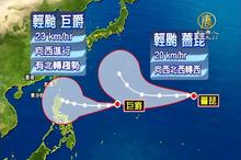 2015-10-14 12:31:35午報頭條帶您看到,又有雙颱成形,氣象局表示,今天(14日)清晨2點,西北太平洋上有輕度颱風「薔琵」形成,以每小時20公里速度,向日本東方海面前進,影響台灣機率不高。另一方面,昨晚(13日)8點生成的輕颱「巨爵」,將會先偏西,接近菲律賓東方海面,未來有逐漸轉北的趨勢,如果,北轉時間較晚,將可能影響台灣,關鍵時間就在本周末。