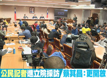 2016-02-25 20:21:34民進黨籍立法院正副院長上任之初,就宣誓新國會將更加開放透明,而今天(25日),立法院副院長蔡其昌,廣邀各公民記者到立法院參加座談,準備開放公民記者進立院採訪,兩個小時的座談下來,各界僅管對開放採訪有共識,對具體辦法卻是意見分歧。