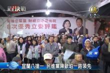 2016-01-16 19:34:22鏡頭轉到宜蘭,宜蘭唯一一席立委,共有8位候選人角逐,目前開票結果由民進黨參選人陳歐珀一路領先,現場支持者,氣氛相當興奮。