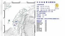地牛翻身!規模4. 5地震 嘉義最大震度4級