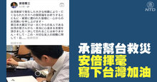承諾幫台救災 安倍揮毫寫下台灣加油