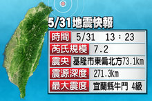 臺灣東部海域宜蘭外海凌晨地震 桃園以北有感