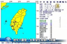 2016-02-18 10:20:12上午9時9分台東縣海端鄉發生規模5.1地震,地震深度16.7km,最大震度高雄桃源5級、台東3級、嘉義縣2級、台南2級、雲林2級、屏東縣2級、花蓮1級、彰化1級、南投1級、台中1級、苗栗1級、宜蘭縣1級。