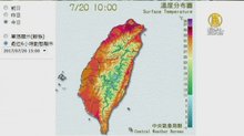 2017-07-20 20:10:51再來關心天氣,受到高壓及台北盆地影響,台北今天下午2點11分,飆出全台最高溫37.9度,雖然沒有打破昨天38度的記錄,但氣象專家吳德榮提醒大家,接下來,將是夏季以來「最熱的一周」。另外,氣象局表示,西北太平洋上有兩個熱帶性低氣壓,預計今明兩天,將陸續增強為颱風,但因為距離台灣太遠,對台灣不會造成影響。