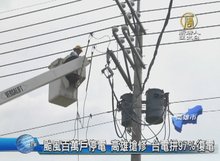 2016-09-28 20:12:31胖颱梅姬帶來的強風豪雨,讓台灣多地滿目瘡痍,而停電情況最為嚴重,最新統計已經來到,380多萬戶,總統蔡英文今天一路南下,勘查桃園與中部三縣市,了解供電進程,並到苗栗署立醫院,探視台電工程車翻覆的受傷工程人員。