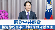 賴總統喊話習:應思考照顧中國人民 不是擴張領土