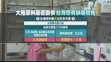 2020-03-09 20:22:58中共肺炎(COVID-19)疫情衝擊,中國原料藥廠復工不順利,但台灣有三成的原料藥是來自中國,恐怕牽連台灣慢性病用藥,面臨斷料。食藥署回應,藥品約有6個月庫存,現階段原料藥沒有短缺,國內已開始預作準備,尋求歐美或國內供應等替代來源。
