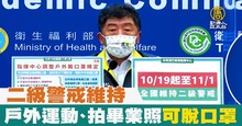 二級警戒維持至11/1 戶外戴口罩有條件鬆綁