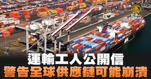 運輸工人公開信 警告全球供應鏈可能崩潰