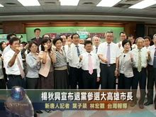 2010-08-09 21:32:11民進黨茶壺裡的風暴終於爆裂,9號下午高雄縣長楊秋興公開宣佈參選大高雄市長,選戰正式進入三國鼎立局面。楊秋興的參選聲明強調,基於使命感才決定參選,主動退出政黨,要走中間路線,請看下面的報導。
