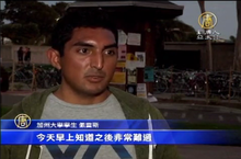 2014-05-26 21:03:52新聞一開始,先帶您來看,美國加州大學驚傳槍擊案,包括嫌犯在內,一共造成7人喪生,台灣外交部今天下午證實,有三位可能為華裔背景,目前正了解詳細情況。警方調查發現,涉嫌開槍犯案的男子,是知名好萊塢電影《飢餓遊戲》副導演彼得羅傑的兒子。