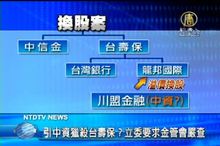 2014-05-29 21:21:14台壽、中信金控換股合併案橫生枝節。由於台灣銀行與龍邦國際兩大股東,對合併案意見分歧,台壽保周五將召開董事會,討論與中信金股份轉換的合約修約案,立委孫大千要求金管會嚴查,是否有中資透過任何管道,進入台壽保的股權結構。