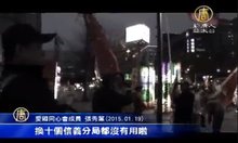 2015-01-21 21:55:04台北市長柯文哲就職時,就向信義分局長表明態度,不想看到法輪功的人被打,但愛國同心會成員,惡行惡狀依舊,周一晚間,不僅對著法輪功學員大聲叫囂,甚至意圖打人。