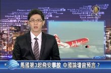 2014-12-29 21:05:47亞洲航空昨天驚傳飛機失聯,連同機組人員,機上總共有162人。這是繼今年3月馬來西亞航空MH370班機失蹤、7月MH17班機遭擊落之後,第3起跟馬來西亞有關的重大事故。這次亞航失聯,美國專家表示可能與高空惡劣天候有關,但也有中國網民拋出陰謀論,表示兩週前,網路上就已經有人預言亞航出事,要大家小心。