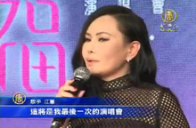 2015-01-02 21:50:38天后江蕙宣布今年演唱會即將開賣,卻又丟出震撼彈,表示這將是她最後一場演唱會,演唱會過後就要退出歌壇。宣布訊息的當下,二姐江蕙幾度哽咽,講完話就快步離去,似乎是擔心情緒潰堤。