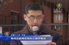 2014-12-20 21:21:30當大家都在準備和家人過聖誕、新年的時候,加拿大年輕的電腦工程師李喆,卻還在為身陷冤獄的父親李曉波爭取自由。他今天在多倫多領館門前宣讀了寫給中共主席習近平的公開信。