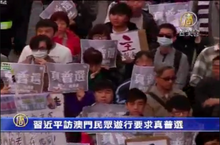 2014-12-21 21:02:5612月20號(星期六),中共國家主席習近平到訪澳門期間,上百名澳門民眾走上街頭抗議,爭取2019年在澳門實現普選特首。