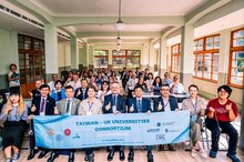2024-11-15 12:47:49台英大學聯盟(Taiwan-UK University Consortium)在國立中山大學360藝文空間舉行首屆會議,雙邊共54名專家學者及代表參與,包括英國大學代表、英國在台辦事處及英國文化協會等19人,以及35名來自台灣各大學的代表與會。研討會針對「淨零碳排」與「英語教育」兩大主題深入討論,並介紹雙邊國際合作計畫,期促成台英雙方更多交流機會。