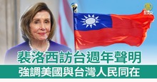 裴洛西訪台週年聲明 強調美國與台灣人民同在