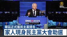 華茲正式獲民主黨提名 家人現身民主黨大會助選